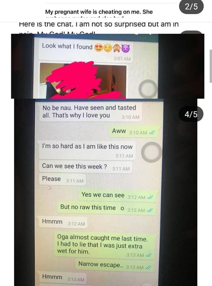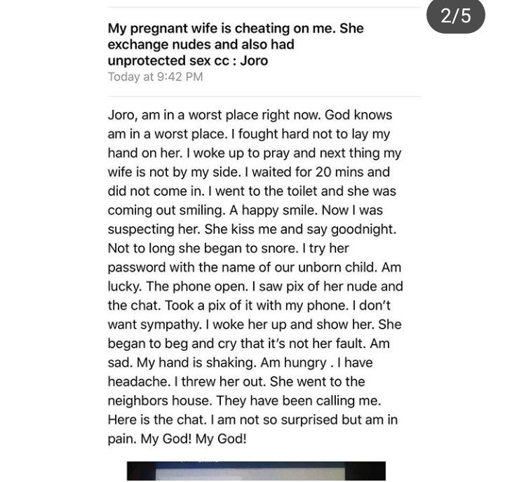 A husband was left heartbroken after he found out that his pregnant wife had been sexting another man and even sent him her nude photo.