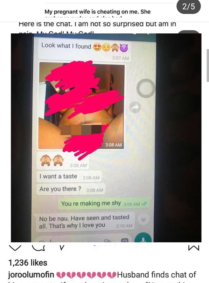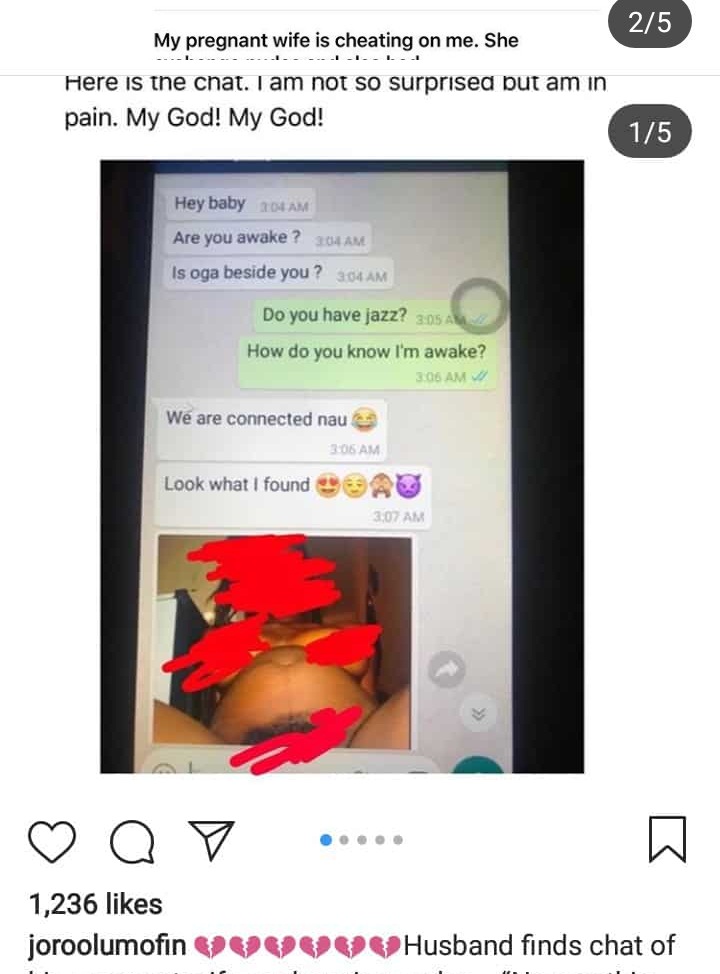 The husband sent screenshots of the chat and nude photo to relationship counsellor, Joro Olumofin, and he, in turn, shared them to Instagram.