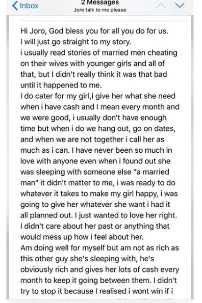 Joro Olumofin has shared the story of a girl who was sleeping with another man under her boyfriend’s nose.