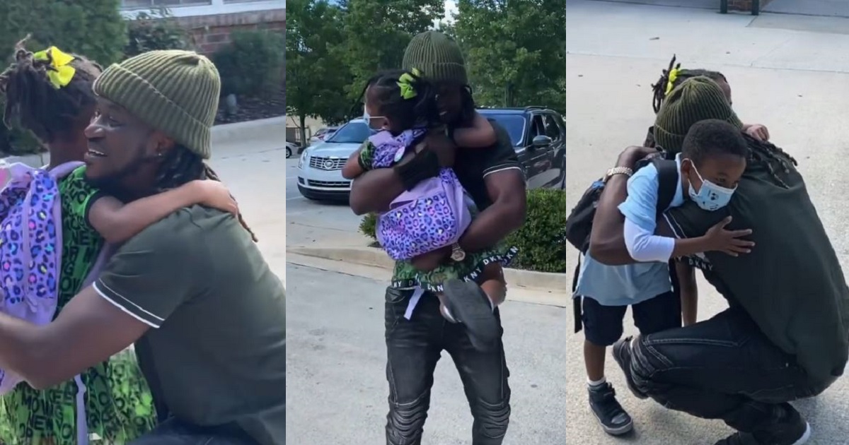 In the video, Rudeboy as he is fondly called, could be seen standing in a parking lot when his kids were led to him by a lady. When the kids sighted him from afar, they happily ran into his waiting arms. It was indeed a joyful moment for the singer and his kids.