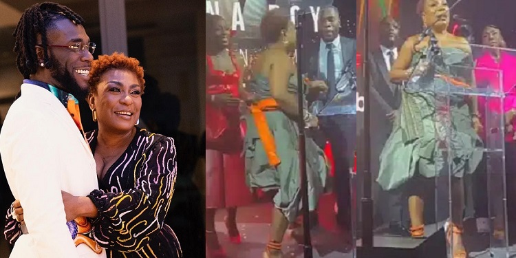 A video showing the heartwarming moment Grammy Award winner, Burna Boy presented the “manager of the year” award to his mother, Bose Ogulu, has gone viral.