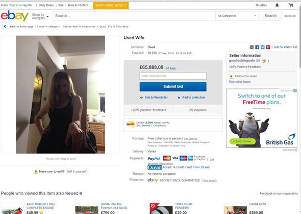 “He always moans he’s poorly, he’s a hypochondriac, then he swans off to the gym for three, four hours at a time. I told him if that if he can go to the gym then he doesn’t deserve my sympathy. If eBay hadn’t taken the listing down, who knows how much I would have got?”