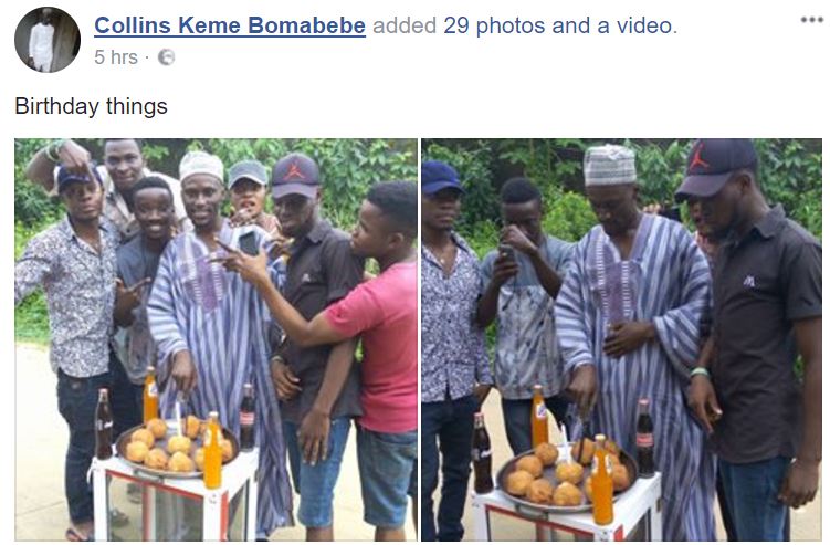 The young man, with Collins Keme Bomabebe as his name on Facebook seemed quite ecstatic as can be as he took snaps with his pals who felicitated with him.