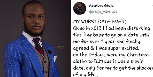 A Nigerian Twitter user, Gbaja Adeoluwa has shared with worst date experience with lady who came to the movie date with her fiance.
