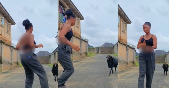 A viral video displays the moment a Nigerian lady ran for her life after a ram chased her while doing the popular Gwor Gwor Gwor Ngwor Challenge on the street.