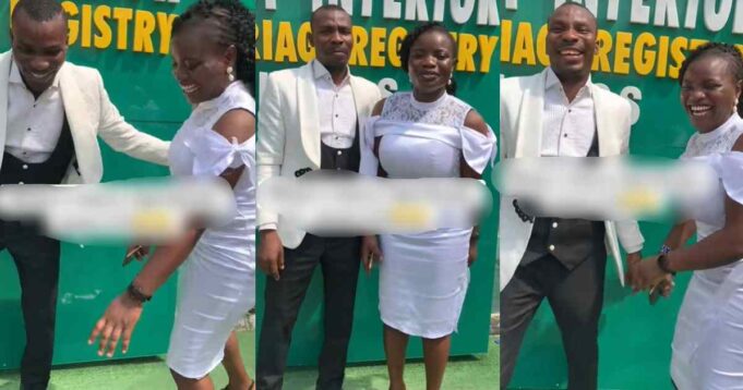 The groom tried to carry his wife in a bridal style as they posed for photos at the court registry, but she jokingly declined his offer because she is a devout Christian woman.