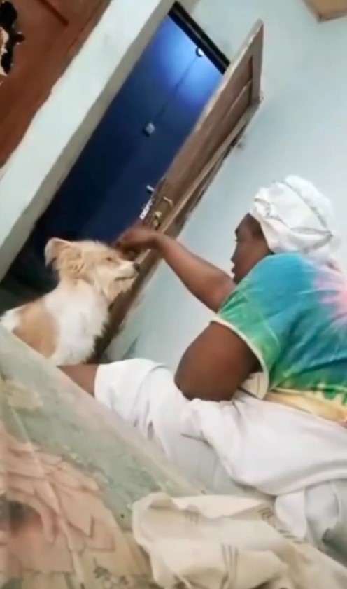 @sterlinglams wrote, “Look at the way the dog is looking at her… She wants him to answer 😂😂😂she has forgotten it’s a dog…if it answers ‘i have heard you Granma’ nko ? Granma will run scatter every where 😂😂😂”