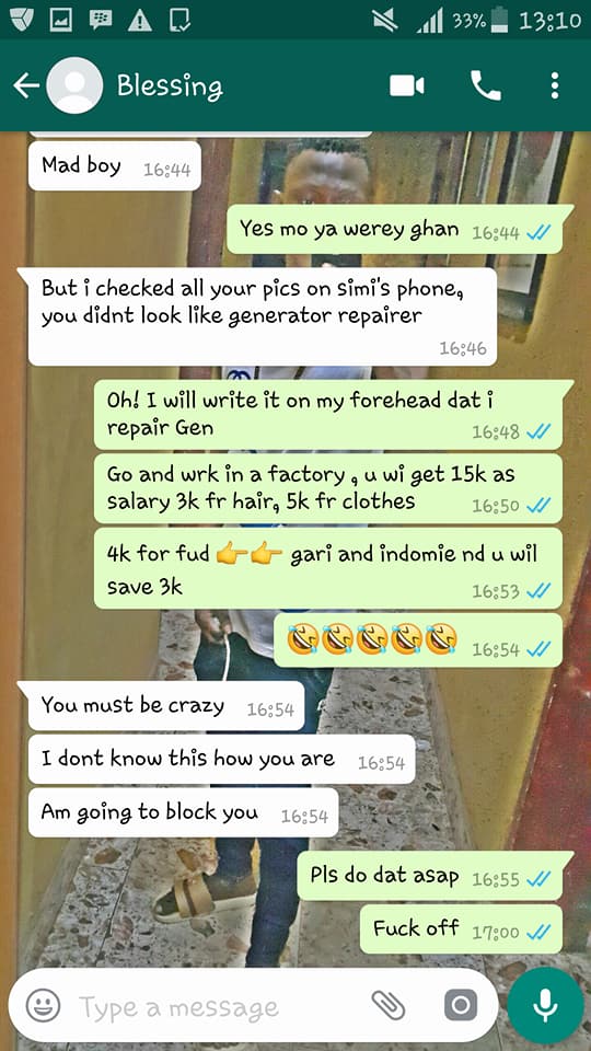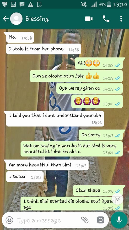 You’d love this Hilarious Whatsapp Chat between a Nigerian guy and a lady who stole his number from her friend’s phone.