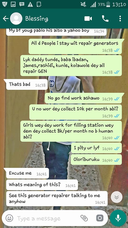 Ashiara when no get work but doest want generator repairer, WO you served her right with that their spoiled puxxxy.
