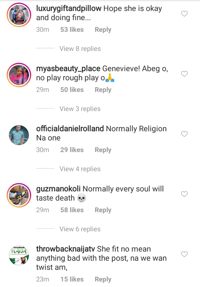 Veteran Nollywood actress, Genevieve Nnaji, has sparked concern from fans with her recent social media post relating to death.