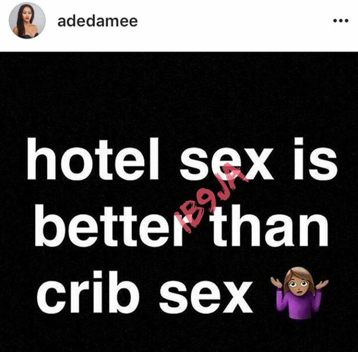 She wrote on Instagram: “hotel sex is better than crib sex” … She quickly deleted the post of course, but not until it was screenshotted.