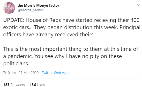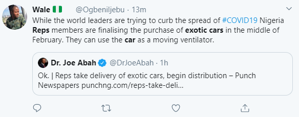 Though the buildup for the delivery of the cars spans to a month and few weeks back, the delivery comes at a time when the country is battling the Coronavirus crisis and as such, Nigerians took to Twitter to blast the move.