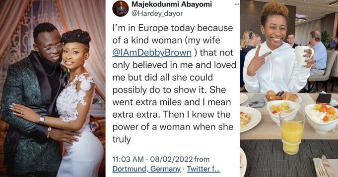 At least, we thought marriage would be a good reason to approve a visit visa. And luckily she agreed and I started meeting her family members gradually. I was at work on a Monday and saw an email from the German embassy confirming receipt of my visa application I thought All these scammers have started, my girlfriend’s call followed asking if I received any email from the embassy I said yes o and she said I should start imagining myself in Europe. I almost cried. She told me later all she had to do to ensure that we leave together even without my knowledge, in her words, ‘I don’t know what will happen to us if she leave’s me behind’ one of the most risky things she did was tell the EU that gave the scholarship that she couldn’t leave without her husband, because we newly wedded and EU obeyed her and ensured that we traveled together same day. I’m in Europe today because of a kind woman (my wife @IAmDebbyBrown ) that not only believed in me and loved me but did all she could possibly do to show it. She went extra miles and I mean extra extra. Then I knew the power of a woman when she truly wants something.