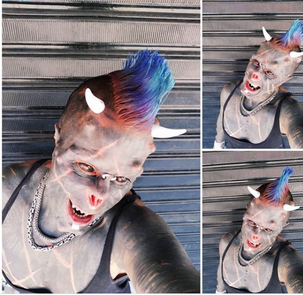 Michel Faro do Prado, 44, a tattoo artist who hails from Brazil has been undergoing a series of procedures to achieve his “sinister creature” look. In a recent development, he takes his transformation to another level by shaping his teeth into arches, removing his nose, and implanting two horns onto his head.