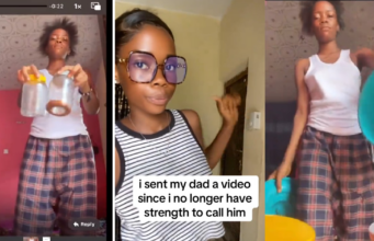 Nigerian dad wears his daughter’s old dress to recreate one of her videos (Video)
