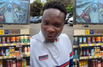 Nigerian man starts dancing after seeing himself on a supermarket’s security cameras (WATCH)