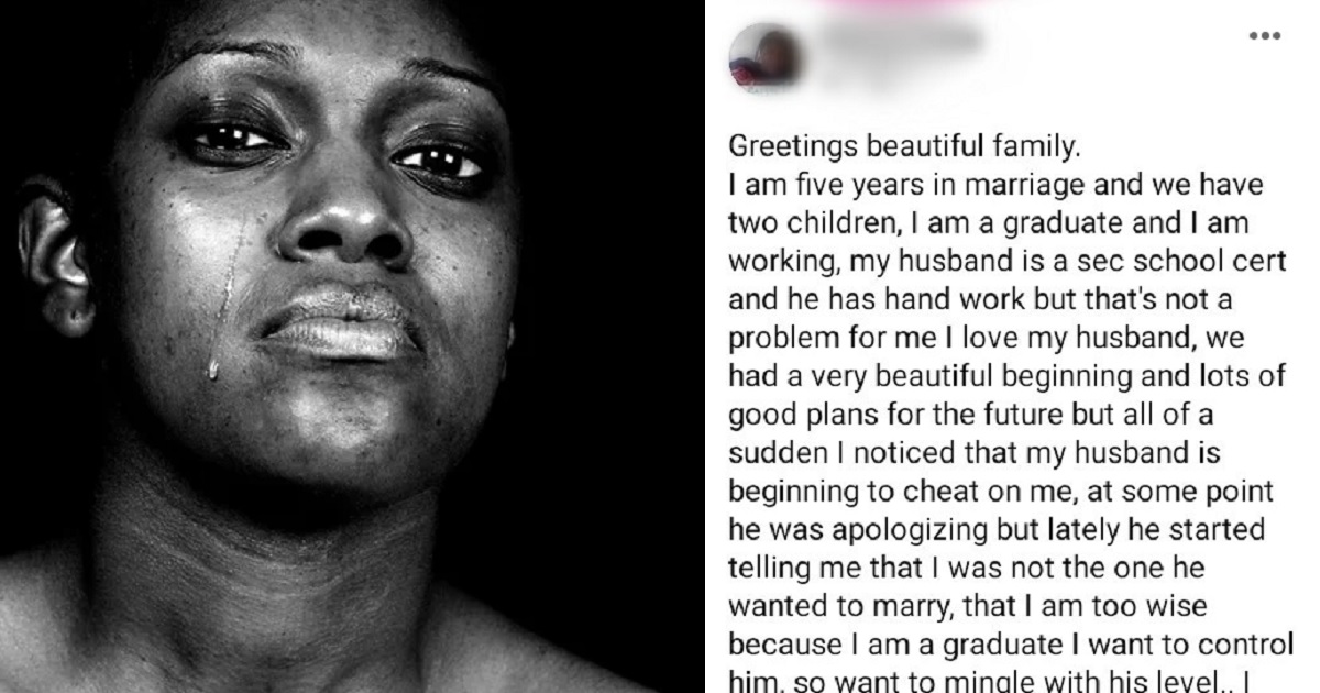 She said in a Facebook post that she is considering divorce since her husband stated that he never intended to marry her because she is a graduate and wants to control him.