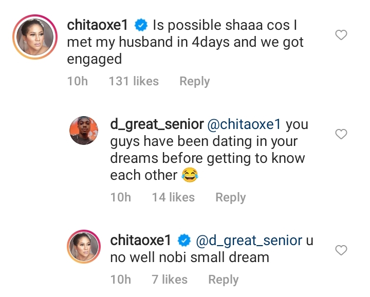 “Is possible shaaa cos I met my husband in 4days and we got engaged”, she wrote.