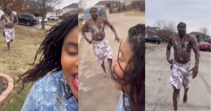 His reaction was unbelievable. The man who was bathing broke out of the shower, covered in soap suds and half-naked, to retrieve his phone from his wife. Unable to catch her, he gave up the chase and returned to the house.