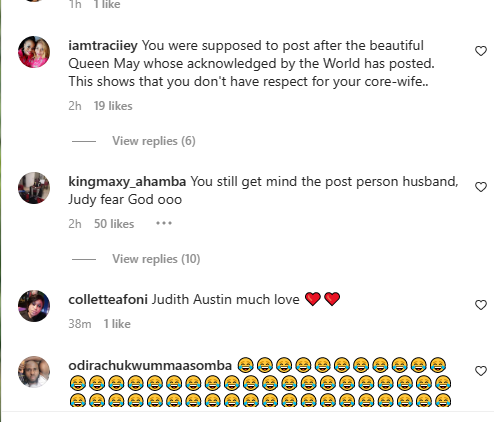 This post from Judy stirred reactions from netizens who were vexed that she was celebrating another woman’s husband when the recognized wife had not made any post to celebrate him and accused her of destroying his home with her lack of respect.