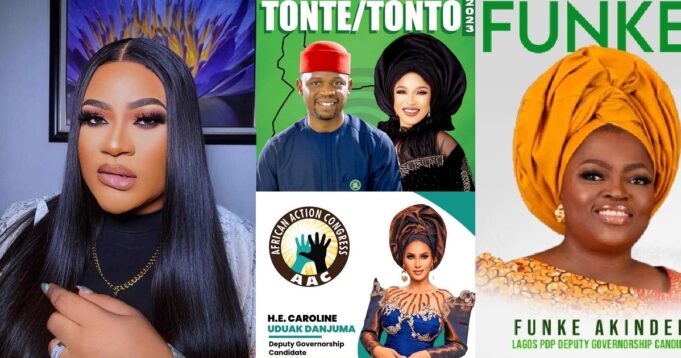 Tonto Dikeh is the running mate of the governorship candidate of African Democratic Congress (ADC) in Rivers State, while Funke Akindele also emerged as the deputy governorship candidate for the People’s Democratic Party (PDP) in Lagos State.