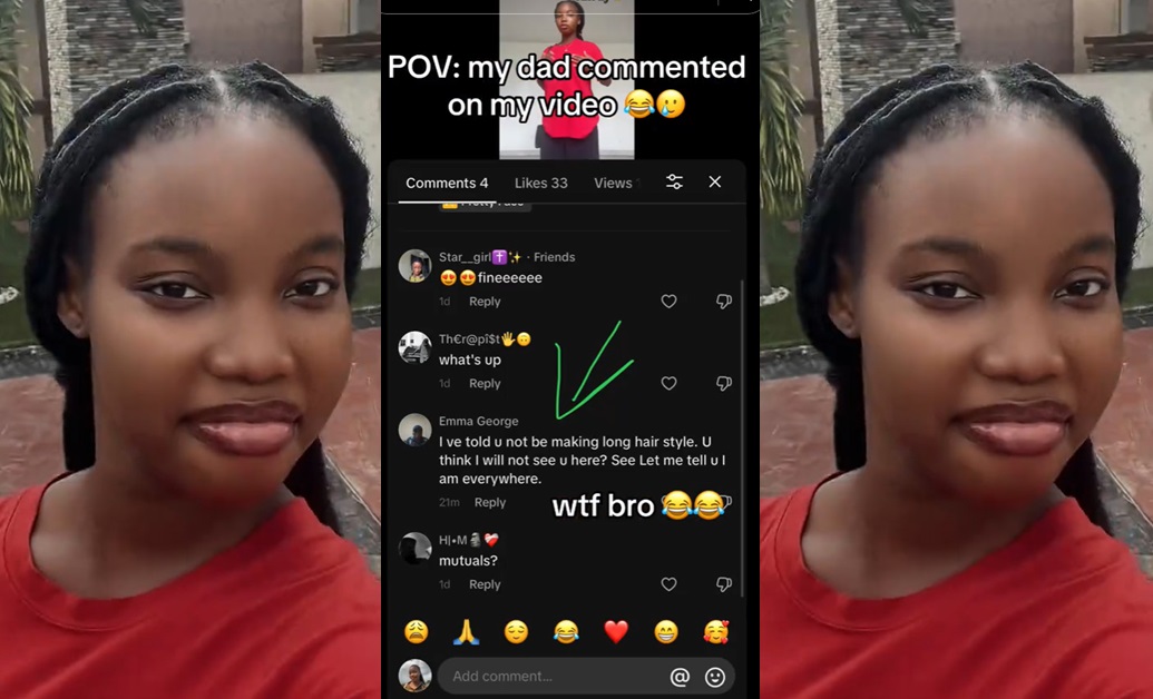 Her dad’s comment echoes typical African parental advice with an amusing twist, drawing both laughter and sympathy from viewers who related to the situation.