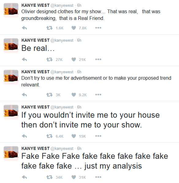 Kanye West took to his most favorite Social media platform, twitter, to praise Oliver Rousteing of Balmain for designing a collection around his wife, Kim.