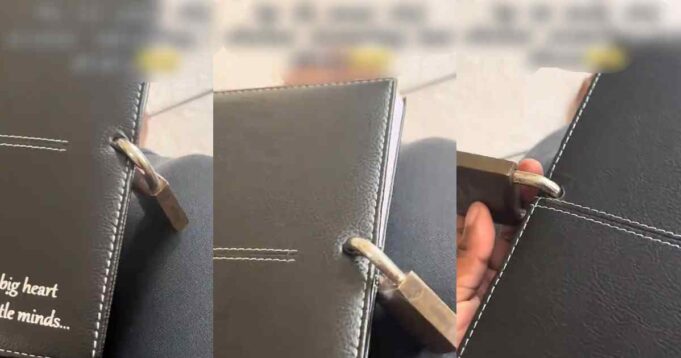 According to the video, the diary was locked with a padlock, which is typically used to secure homes. To prevent others from reading or invading her privacy, the 12-year-old had secured the diary by inserting a padlock into the cover of the book.