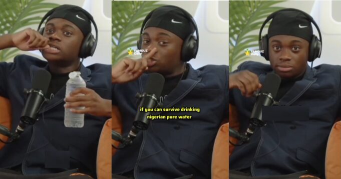 In his words, “If you can survive drinking Nigerian pure water you can survive anything. Nothing can kill you, not covid, not ebola..not monkey, nothing can touch you. I drank pure water…bro to this day I still get upsets in my stomach, I swear down bro. There are times I have to fight for a whole day, my belly have not been in the same shape since…”