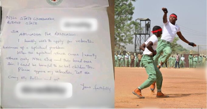 The corps member had written the Benue State Coordinator of a spiritual problem which made him attack NYSC staff and their loved ones only. He further added schoolchildren to the mix.