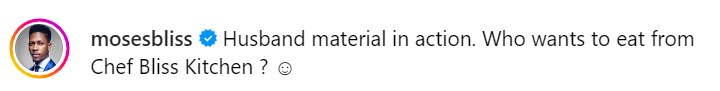 Husband material in action. Who wants to eat from Chef Bliss Kitchen ? ☺️