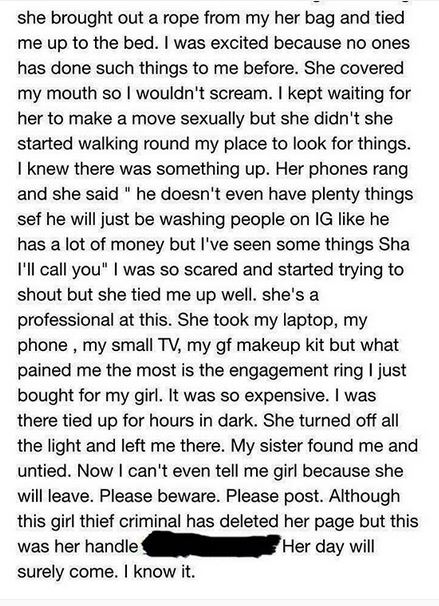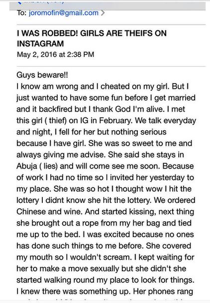 Joro Olumofin has shared a real life account of a social media user that robbed her victim blind under the clever guise they were set to have s*x.