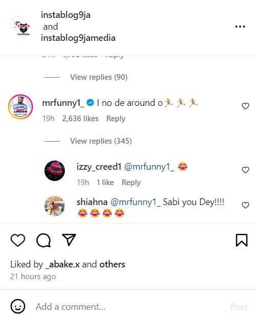 mrfunny1_ said: “I no de around o🏃‍♀️🏃‍♀️🏃‍♀️”