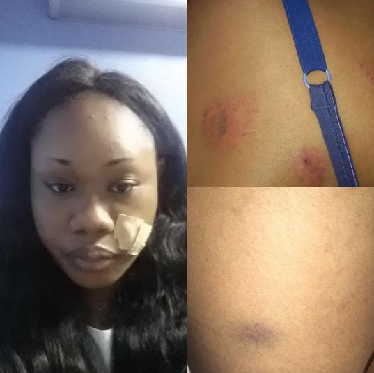 “Two years ago I would get to work with tears in my eyes, pain in my heart and body, marks on my face and body. A doctor’s appointment was an everyday medication. The doctors insisted I get my husband arrested(I wasn’t even married). I wanted to leave, but I had nowhere to go, was I going to live on the 3rdmainland bridge? So I endured all the pains of domestic violence from my aunt till I got punched in the eye resulted to internal eye bleeding and a knife was pulled out to take my life away…’God was my strength’ I had gone through this for five good years, I was 22 and couldn’t get home a lil bit after 7pm without a slap to say me welcome, i couldn’t even go on official trips without her fists coming out to play, I couldn’t even have friends over I was still being beaten like a slave and a 2yr Old Child! I moved out with Nuin in my pocket, just my bestfriend and sister @teema_diva (little wonder why I love u so much) by my side and prayers. Hey I ain’t dead but alive, might have been but I took a chance and a leap of faith, say NO TO DOMESTIC VIOLENCE, it’s better late than never. I still have my scars but they only remind to be stronger whenever I feel like giving up. I CAN SPEAK BECAUSE I AINT DEAD. SEEK HELP IF YOU MUST, STOP SUFFERING IN SILENCE.#thinkaboutyou”