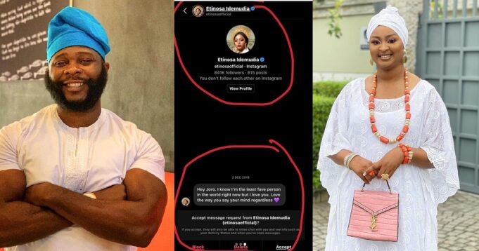 The drama started when Etinosa referenced Joro’s style of “secret taboos in relationships” content in her comment on a her colleague, Toni Tones post.
