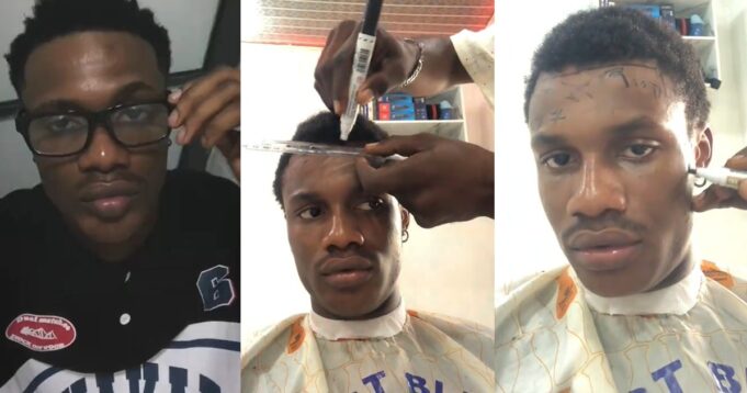 His street barber even wrote symbols as if he were solving a mathematical problem on his forehead. “I was just so confused,” he admitted, pointing out the odd lines and patterns on his scalp.