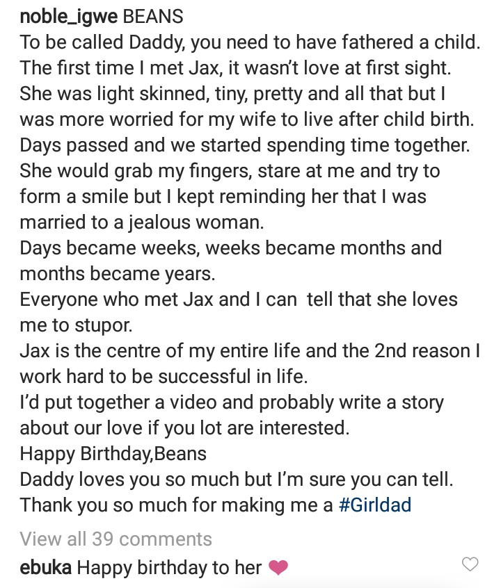 Popular Blogger, Noble Igwe has narrated the story surrounding his daughter’s birth as she marks her 3rd birthday.
