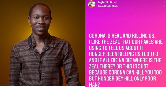 Kuti who praised “faves” of some Nigerians over their zeal in telling their followers about the virus, wondered why they are not channeling same passion to talk about hunger.