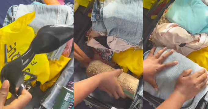 A lady discovered the shoe she refused to give her younger sister in the luggage and swapped it for a tuber of yam before her trip.