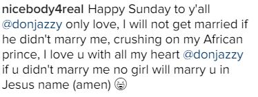 The lady, identified only as Bisola, had tongues wagging after she claimed that popular producer and record label owner, Don Jazzy will marry her.