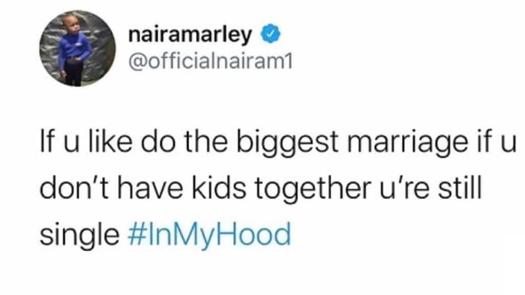 ‘If you like do the biggest marriage, if you don’t have kids, you’re still single”.
