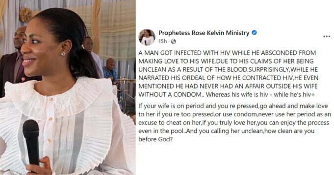 Prophetess Rose said this while sharing her encounter with a man who is HIV positive. She said the man had an affair with another woman without a condom because he felt his wife was “unclean” while on her period.