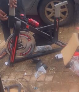 The viral clip revealed a young man coupling the spinning bike together after unboxing the packaged equipment.