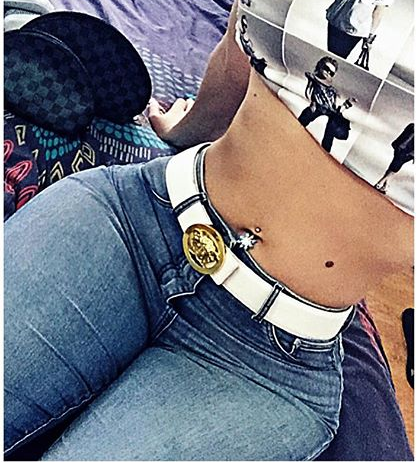 Wife of Nollywood actor, IK Ogbonna, Sonia Morales, who had her first baby for the actor few months shared this amazing photo of her gorgeous tiny waist and claims that she got this without waist trainers. She says she been working out.