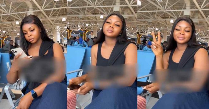 The woman @kinglamii took a video of herself at the airport as she waited for her trip to her third foreign vacation with her partner,