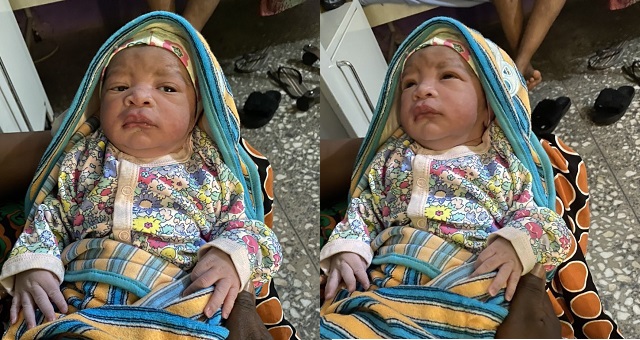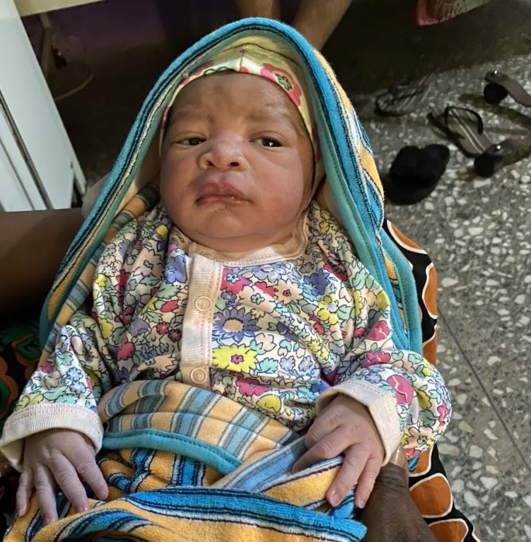 The father of the baby, Olayinka suspects that his newborn son is ”unhappy” to be a Nigerian as he looks grumpy.