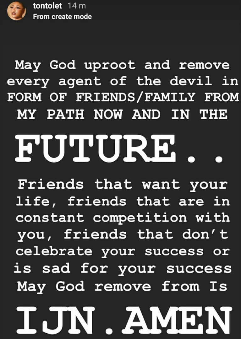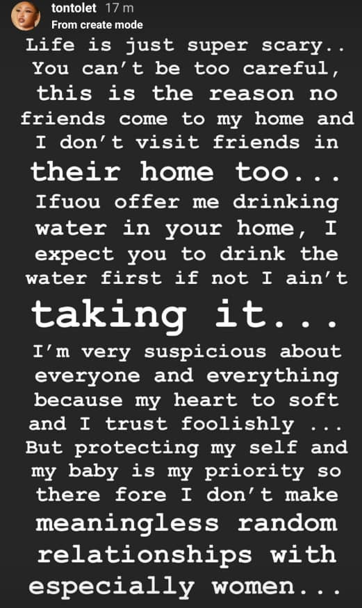 The mother-of-one took to her instastory to state that life has become so scary that she is suspicious of everyone around her and doesn’t make “meaningless random” relationships. She advised people to be careful of the friends they keep.