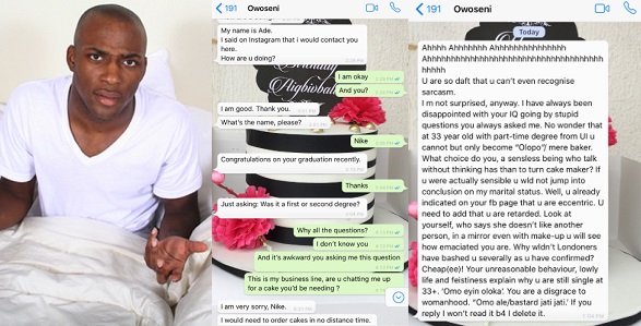 But the lady bluntly told him she wasn’t interested in starting anything with a married man – it was at this point he switched to his real self by sending a lengthy and insulting message to her.