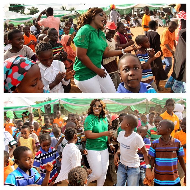 The beautiful actress runs the House of Empress Njamah Foundation and does this several times a year. She also distributed lots of items from clothing, food and snacks to them.
