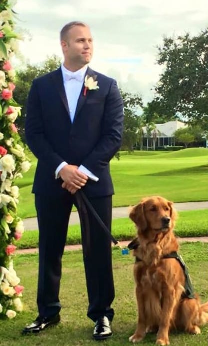 Gabe, the Best Man at Justin’s wedding, is a service dog who matched with him years ago through the Warrior Canine Connection. The whole process aims to help veterans deal with the post-traumatic stress disorder by connecting them with support animals.